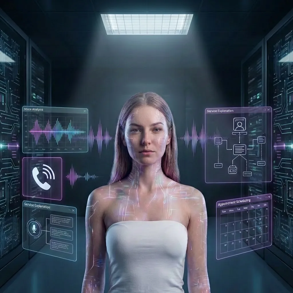 She talks like a real assistant, handles common questions, and knows when to book an appointment or pass control to you.