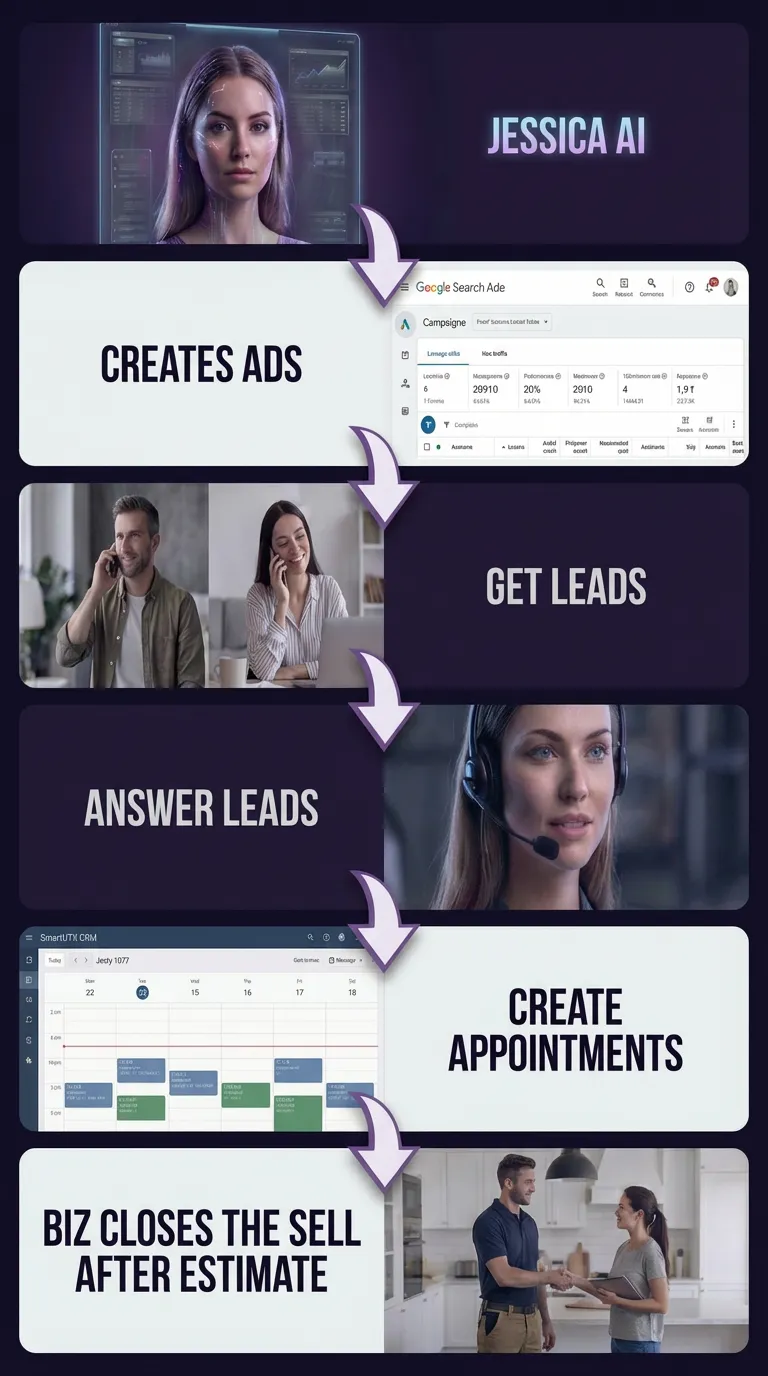 With the heavy lifting done advertising, answering, and scheduling, your only job is to show up, provide your expert estimate, and close the deal. Jessica handles the hustle; you handle the craft.
